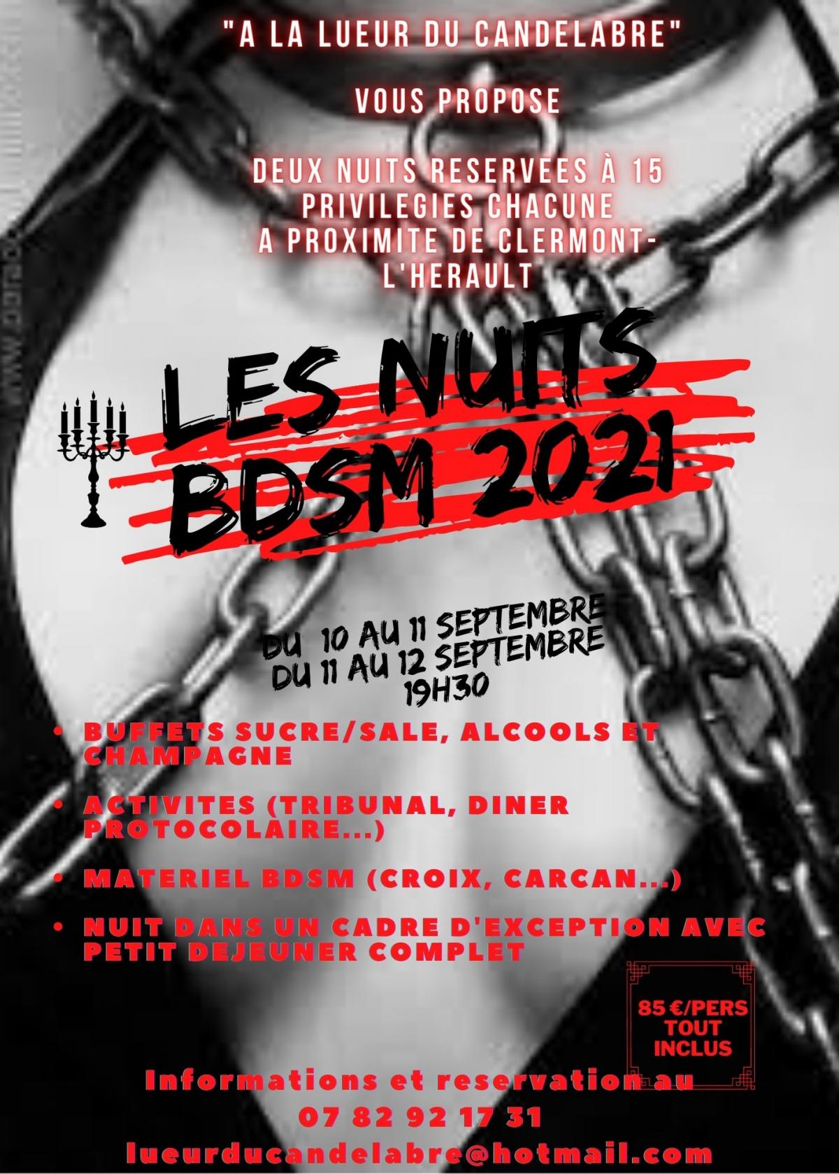 A la lueur du candélabre organise deux soirées pour 15 privilégiés chacune dans un cadre d'exception les 10 et 11 septembre 2021. Nous vous proposons l'apéritif, le buffet salé et sucré, le champagne, la nuitée et le petit déjeuner complet ainsi que des activités (tribunal, diner protocolaire) et l'accès aux matériels ( croix, carcan, banc a fessée, coin cire...)..
