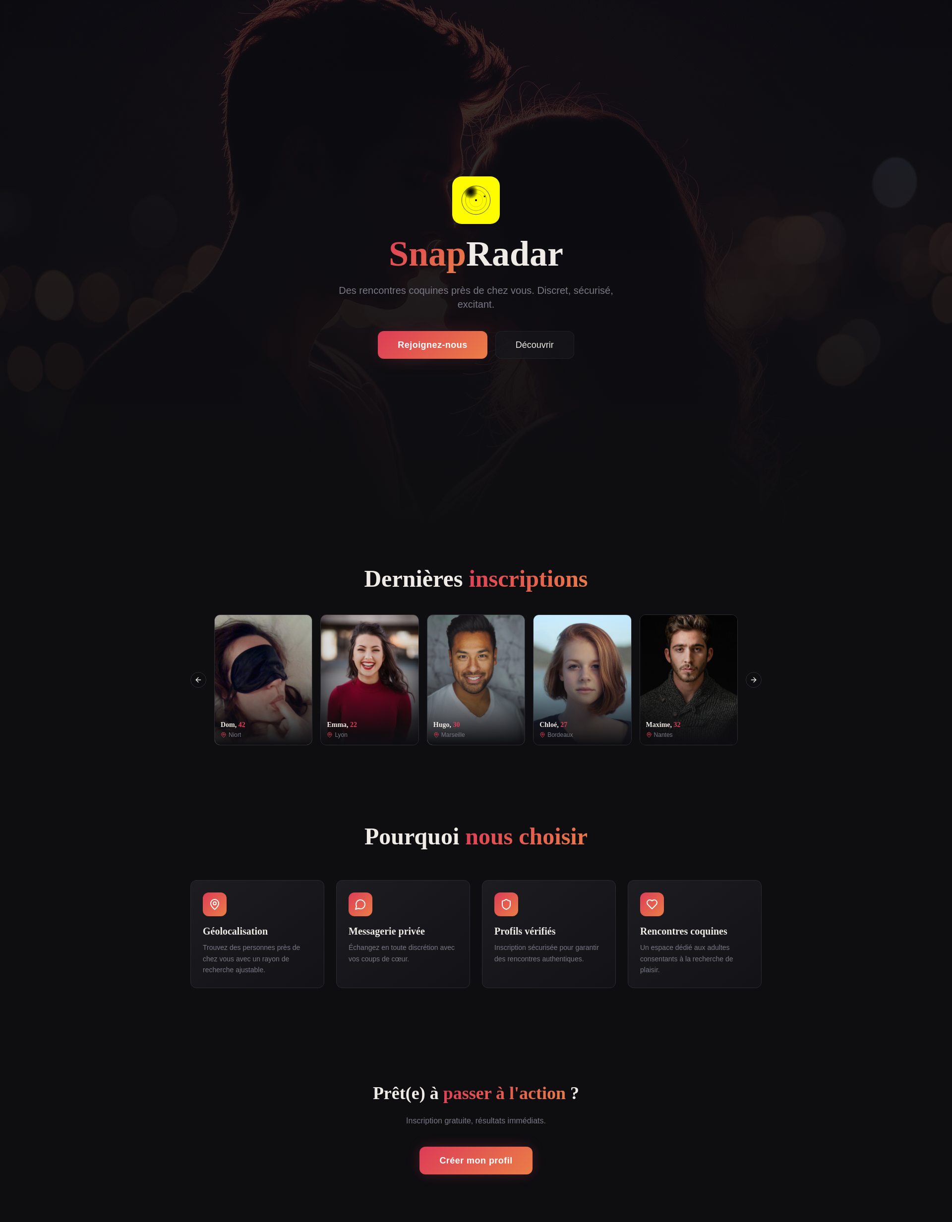 En train de créer un site de rencontre 100% gratuit, ouvert aux beta testeurs : https://snapradar.lovable.app